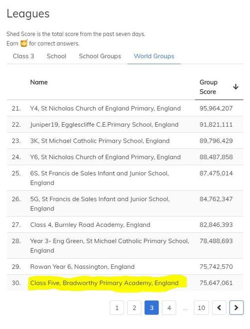 Let me start by saying what an awesome job you have all been doing on EdShed over the past few days - we're 2nd for Spelling and 1st for Maths in our school! Keep up the incredible effort!