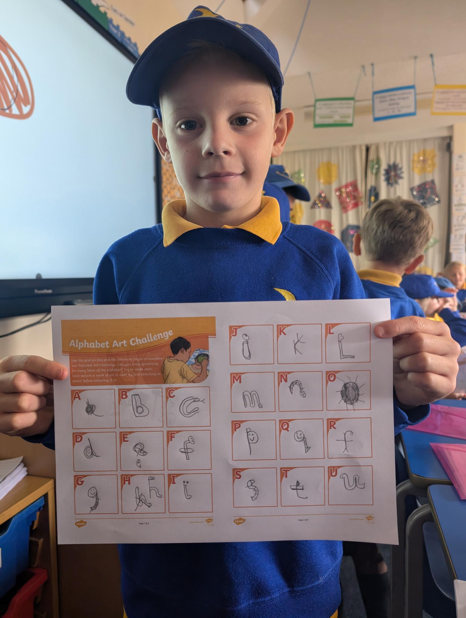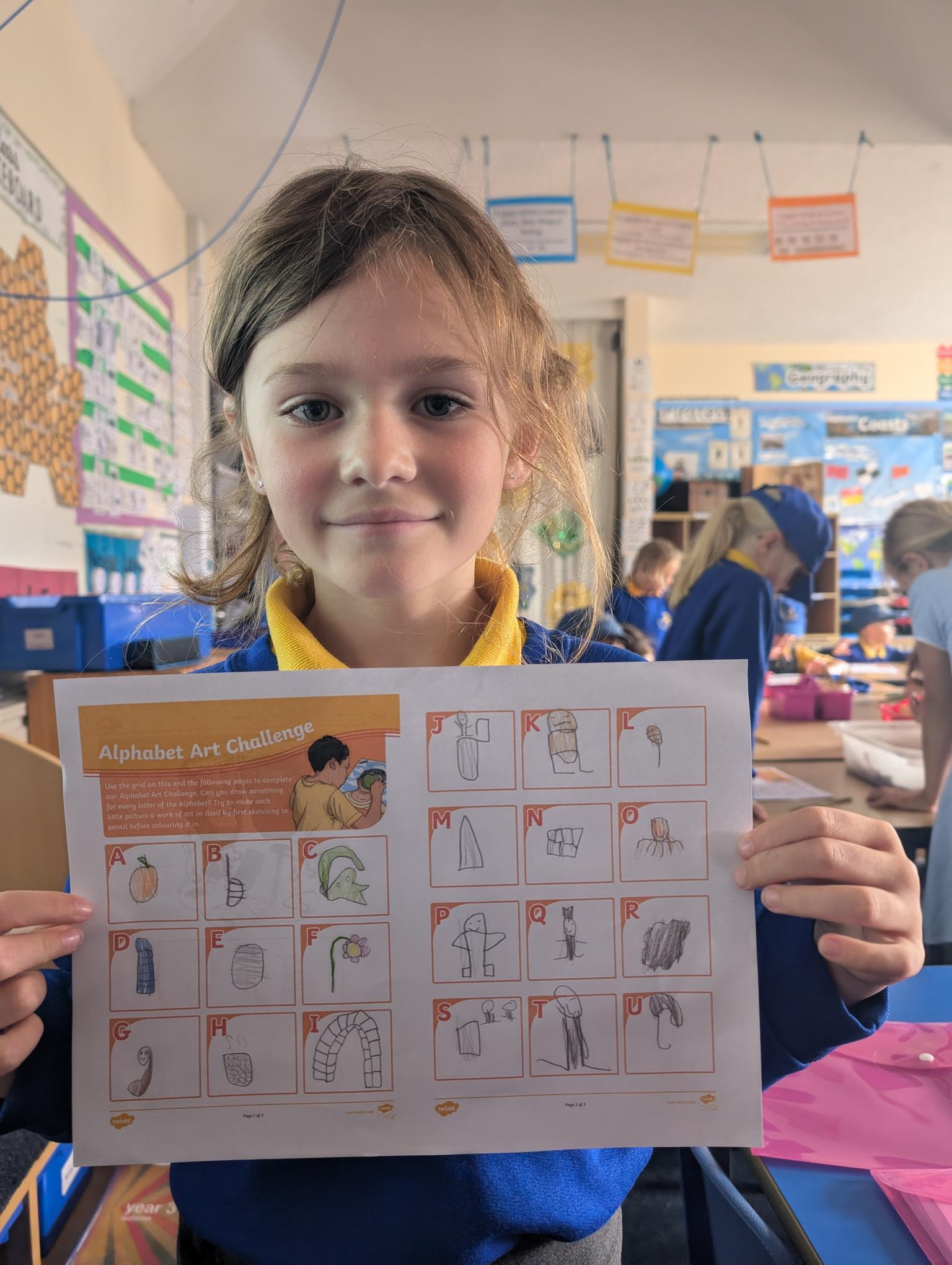 I've now uploaded the 'Alphabet Lines Challenge' to our Home-Learning page for you to have a go at if you've already completed the 'Horizontal and Vertical Lines' art activity.