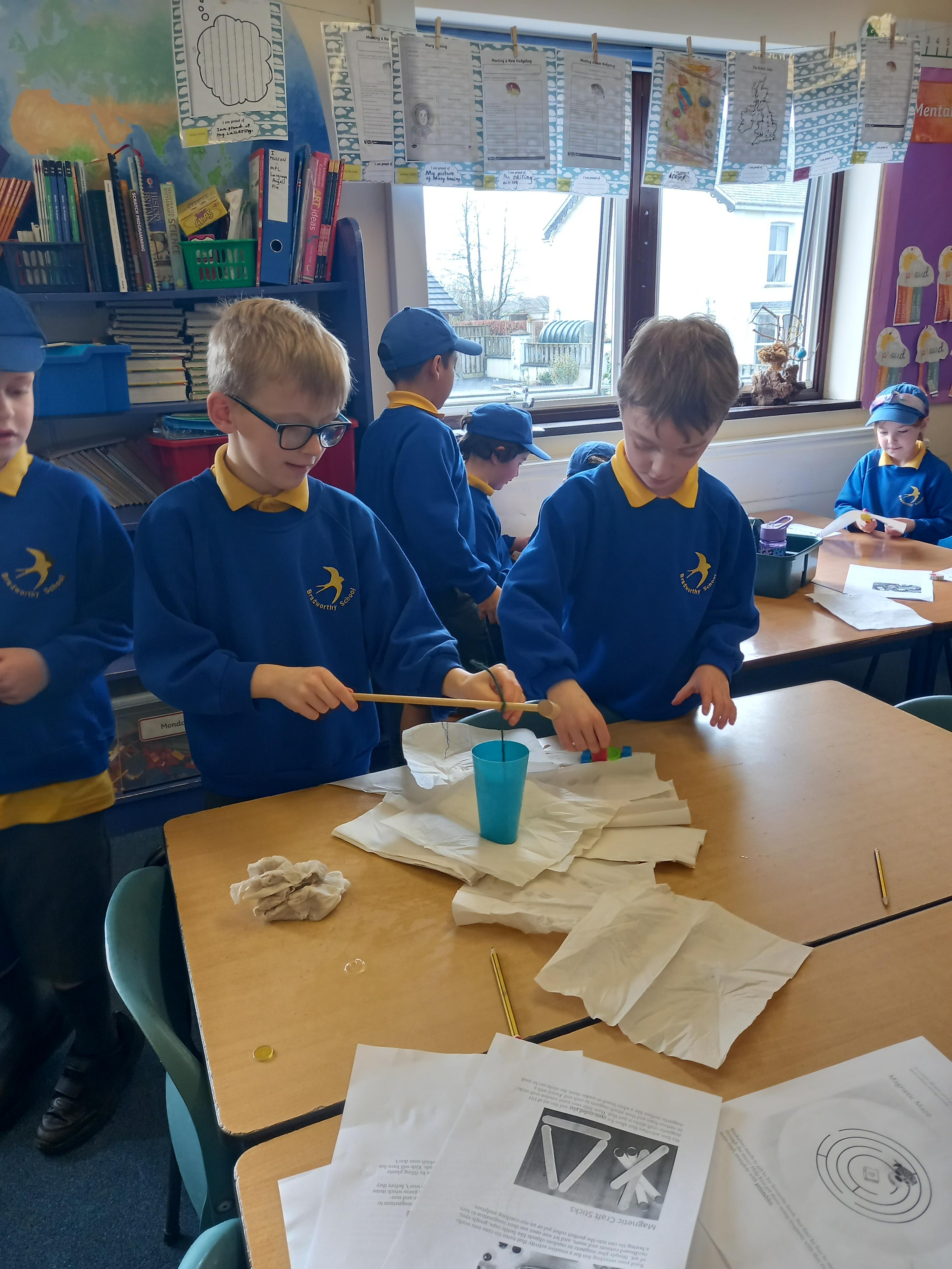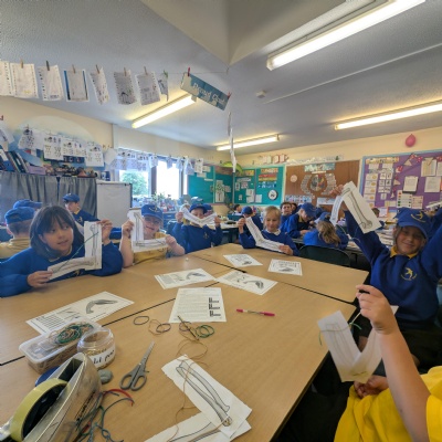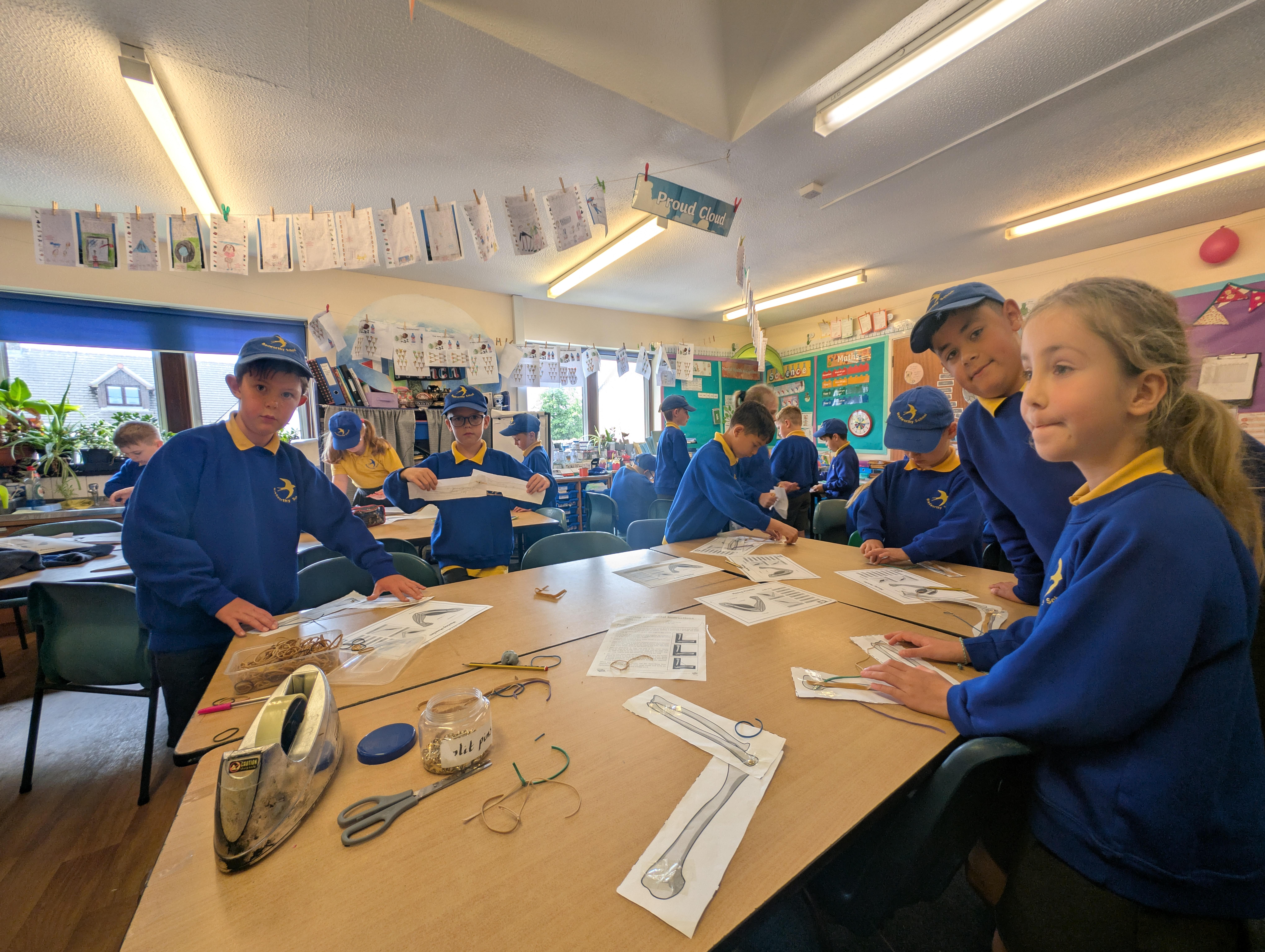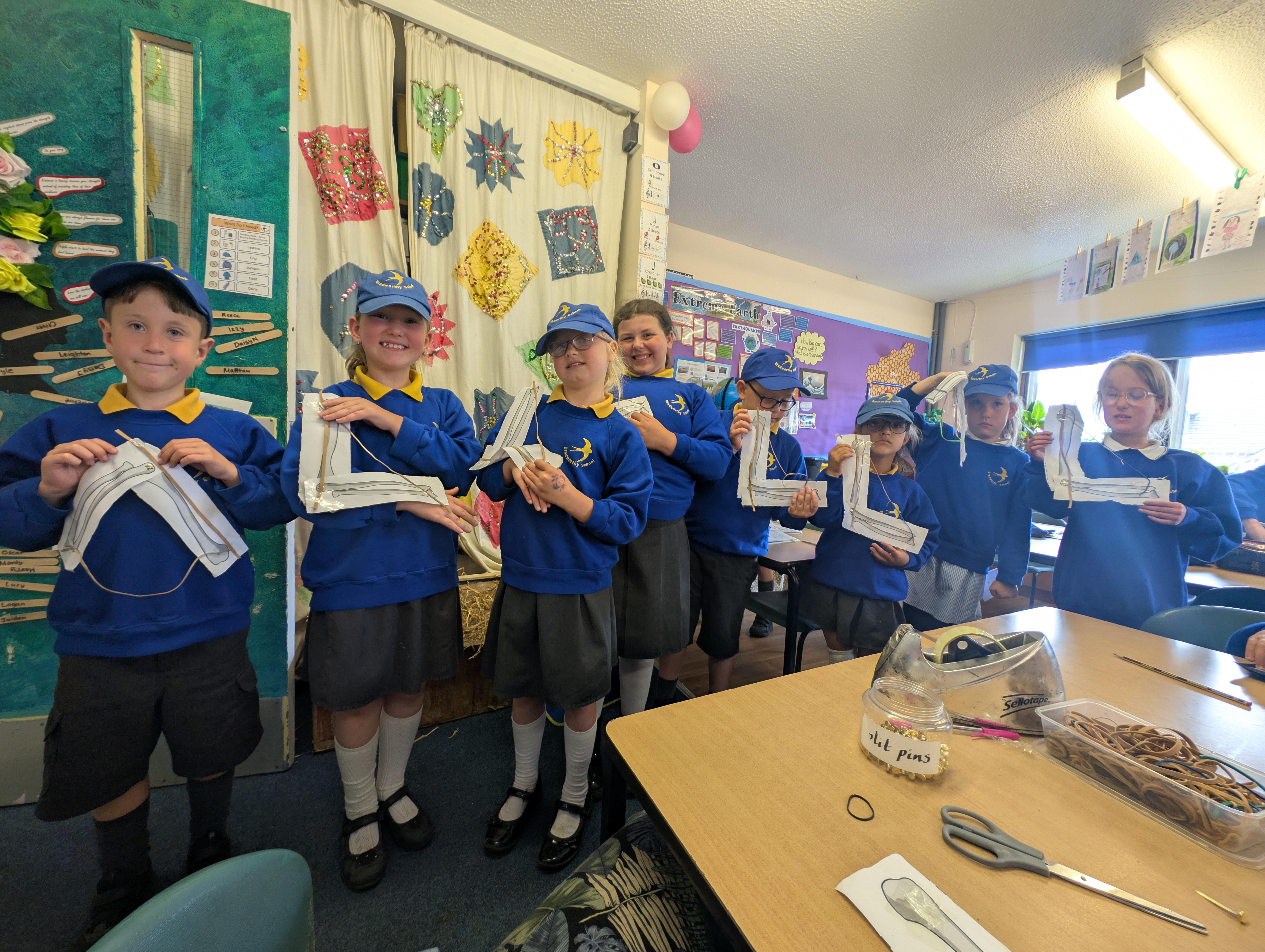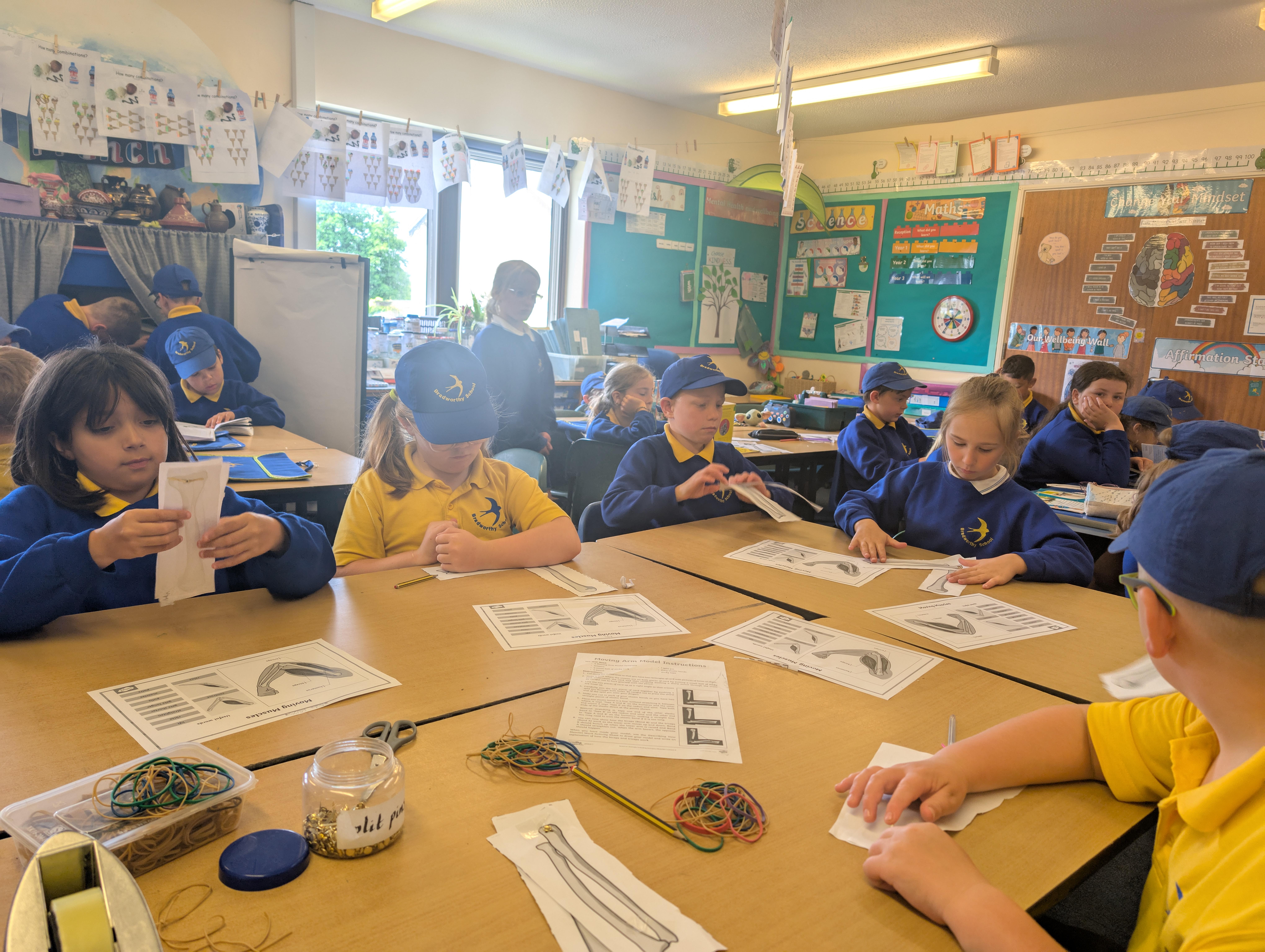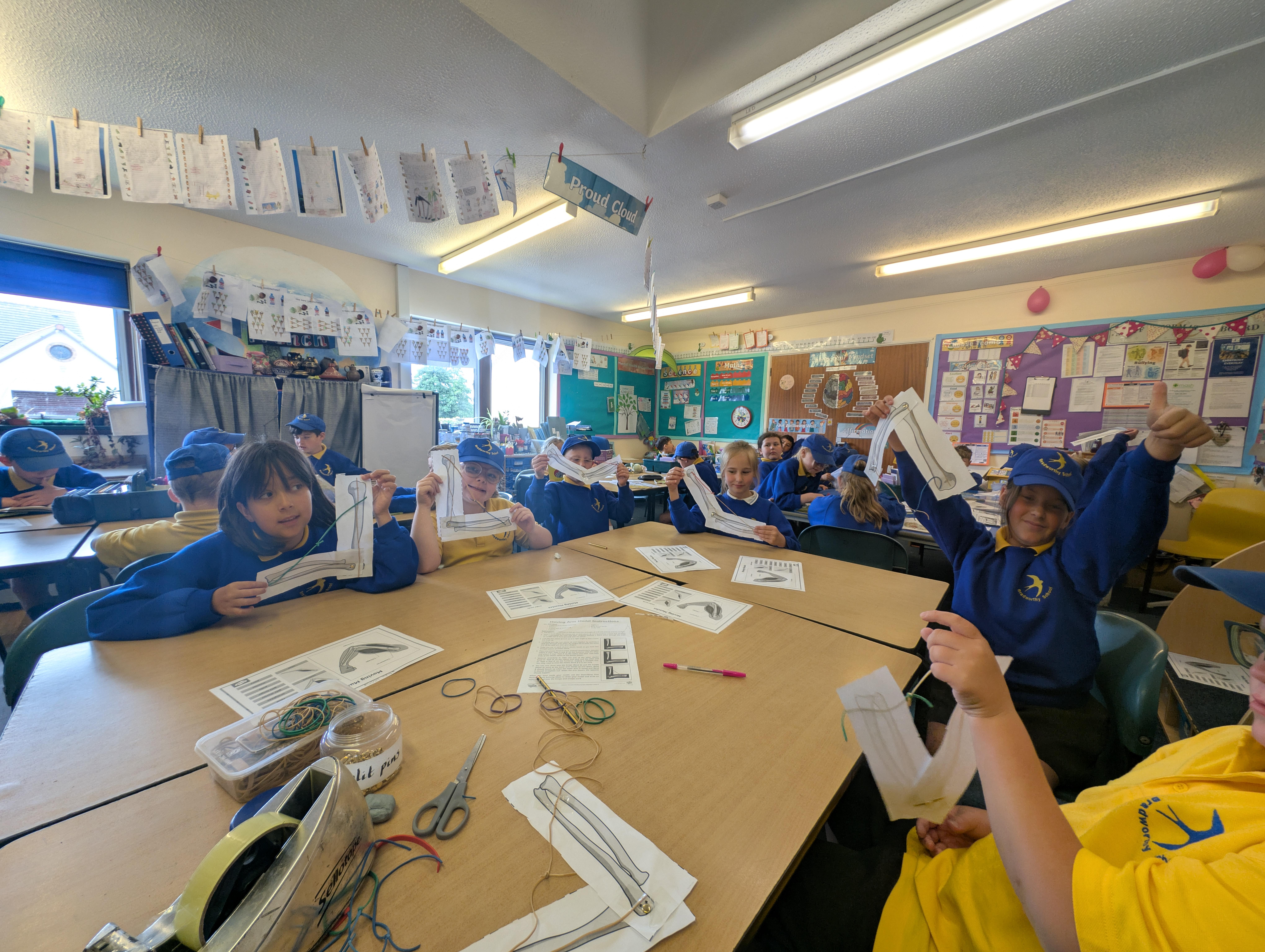We spent the afternoon learning about our muscles and how they help to move our body and made a demonstration of this with a split bin, some paper bones and some elastic bands!