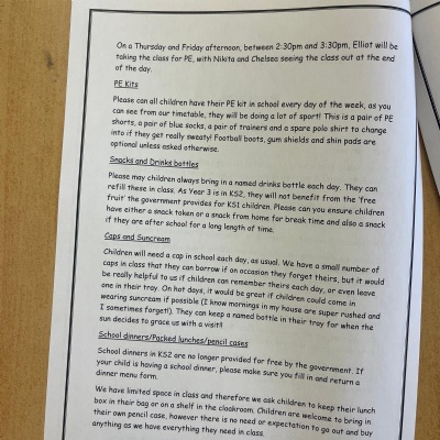 Unless you have a pack being posted to you, there are packs for each of you in the usual place in the playground, ready for you to collect from Monday morning.