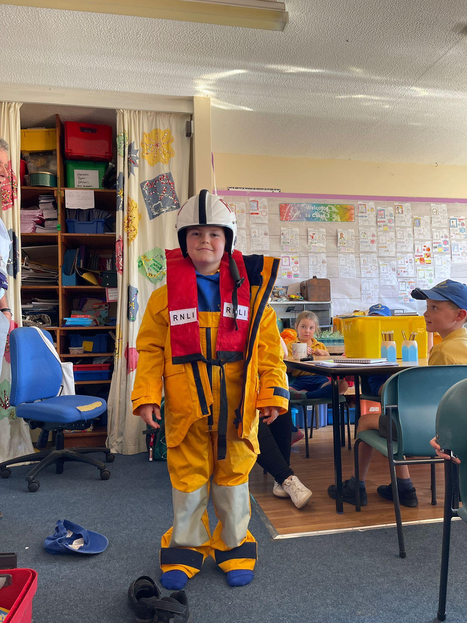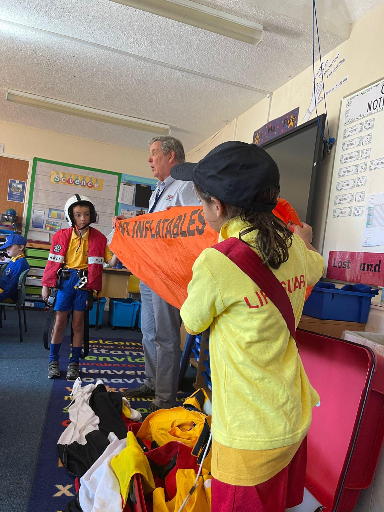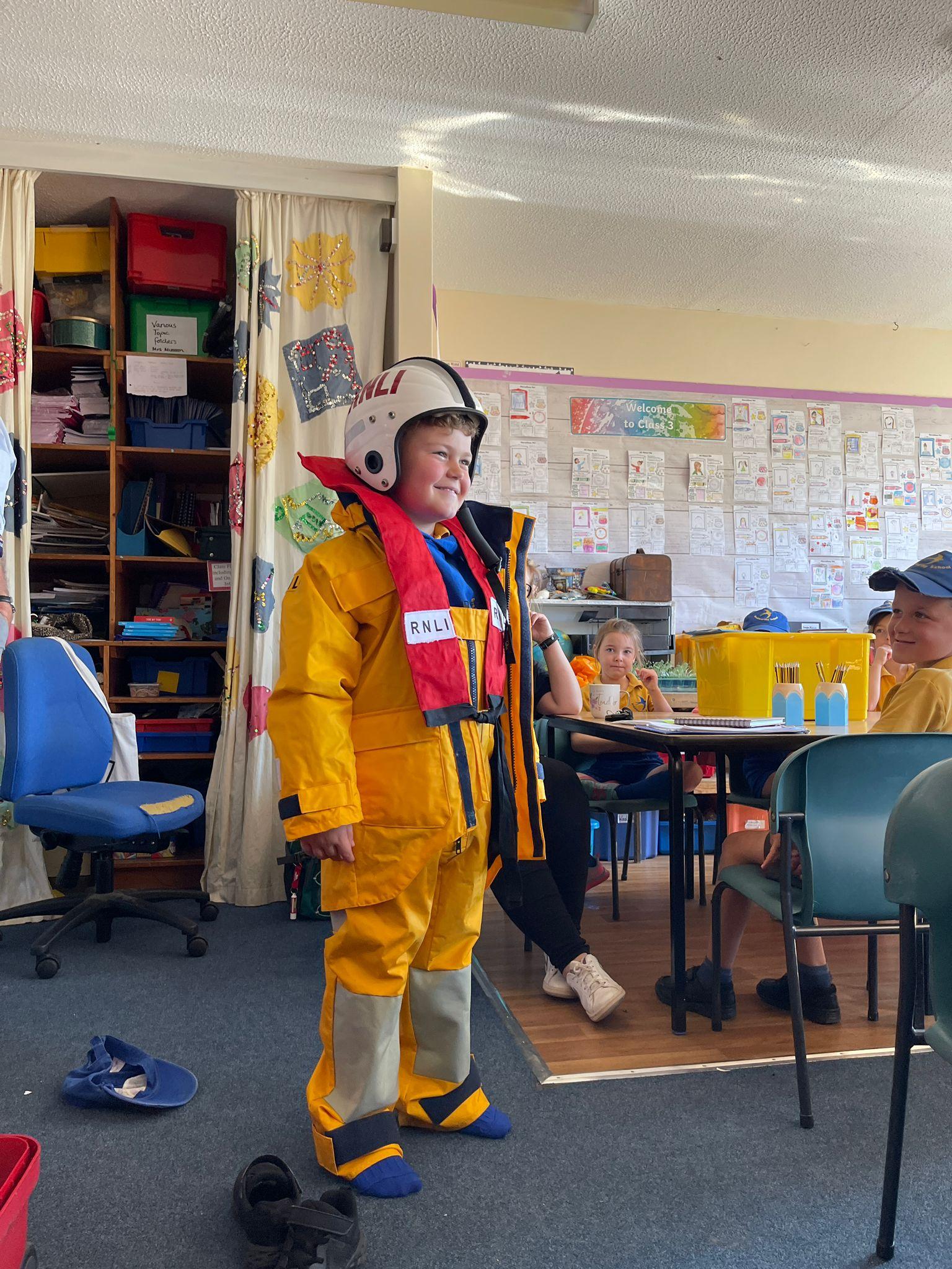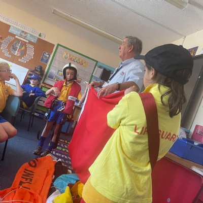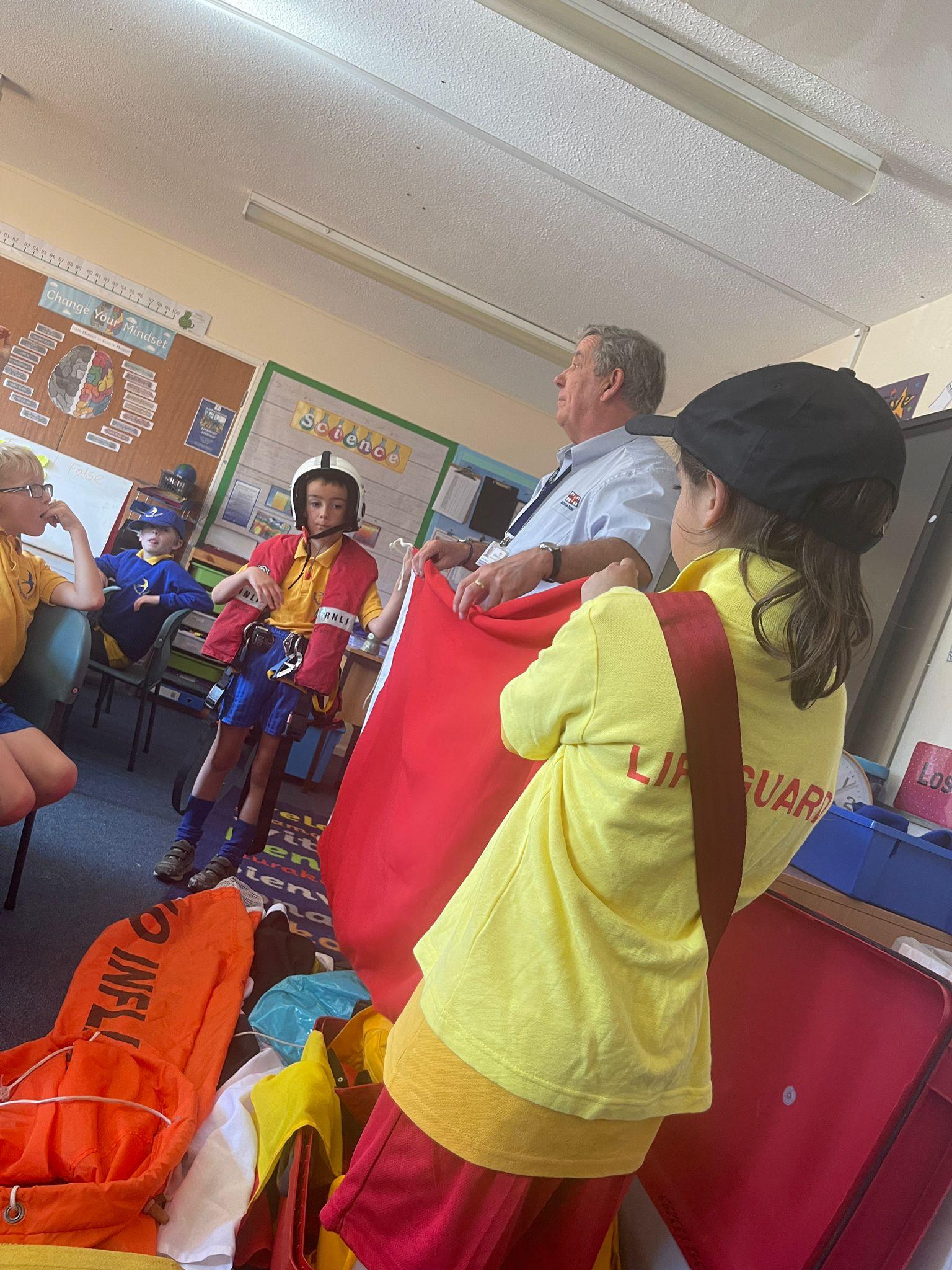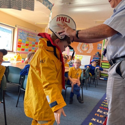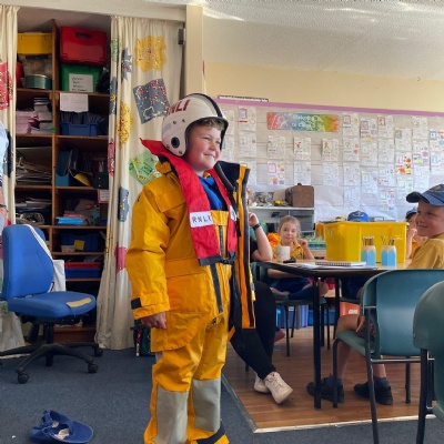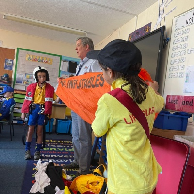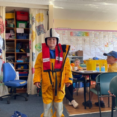 We had a visit from the RNLI on Friday. John spoke to us about water safety on the beach primarily, and things like what to do in an emergency, what the flags mean and different stories of rescue. Some children in class dressed up as life guards and had a go at holding the different equipment. We really enjoyed the interactive talk and learnt a lot!
