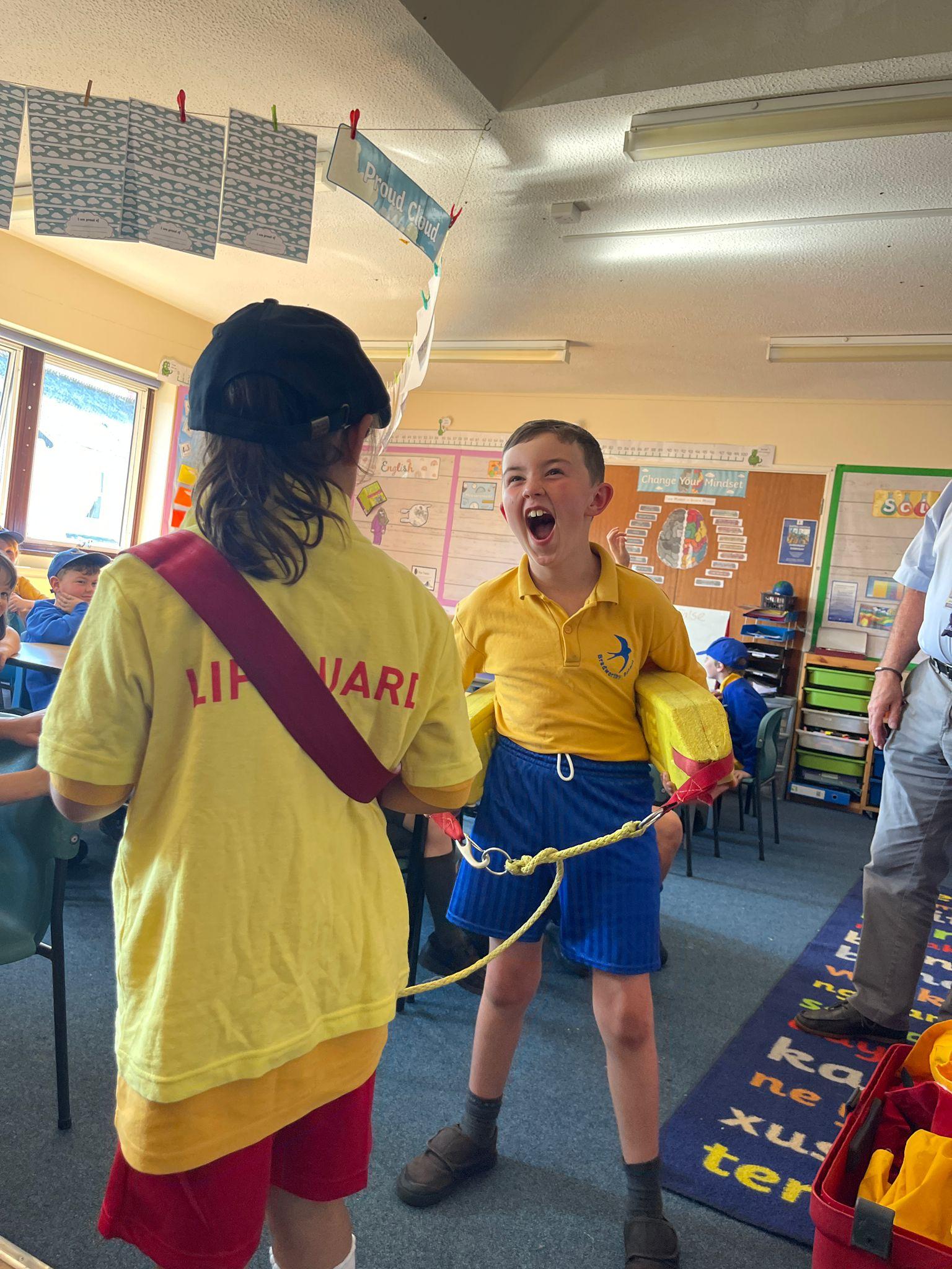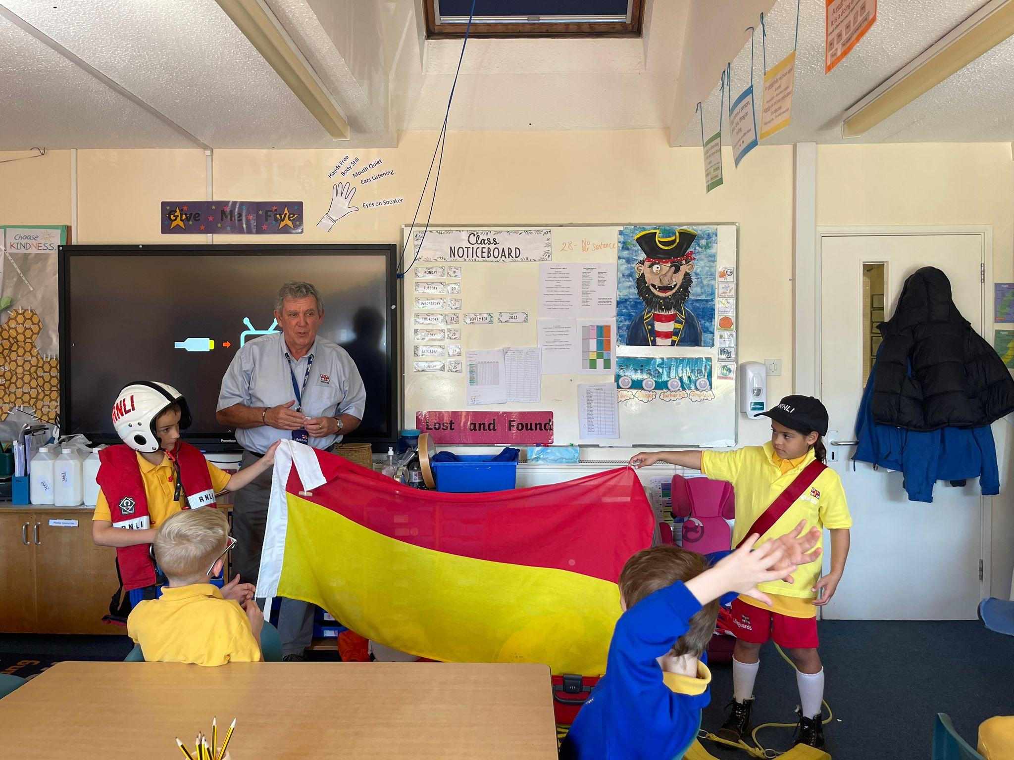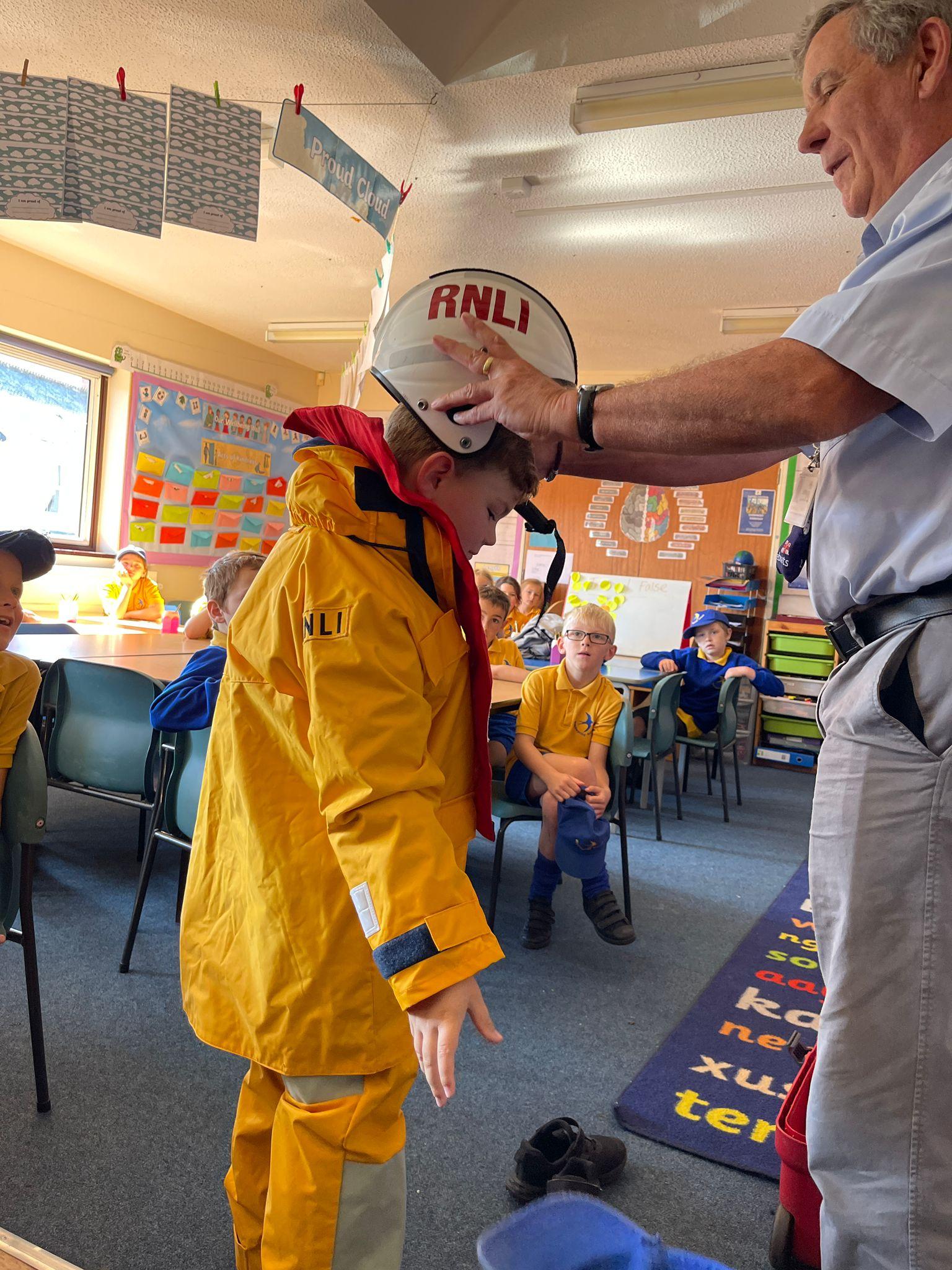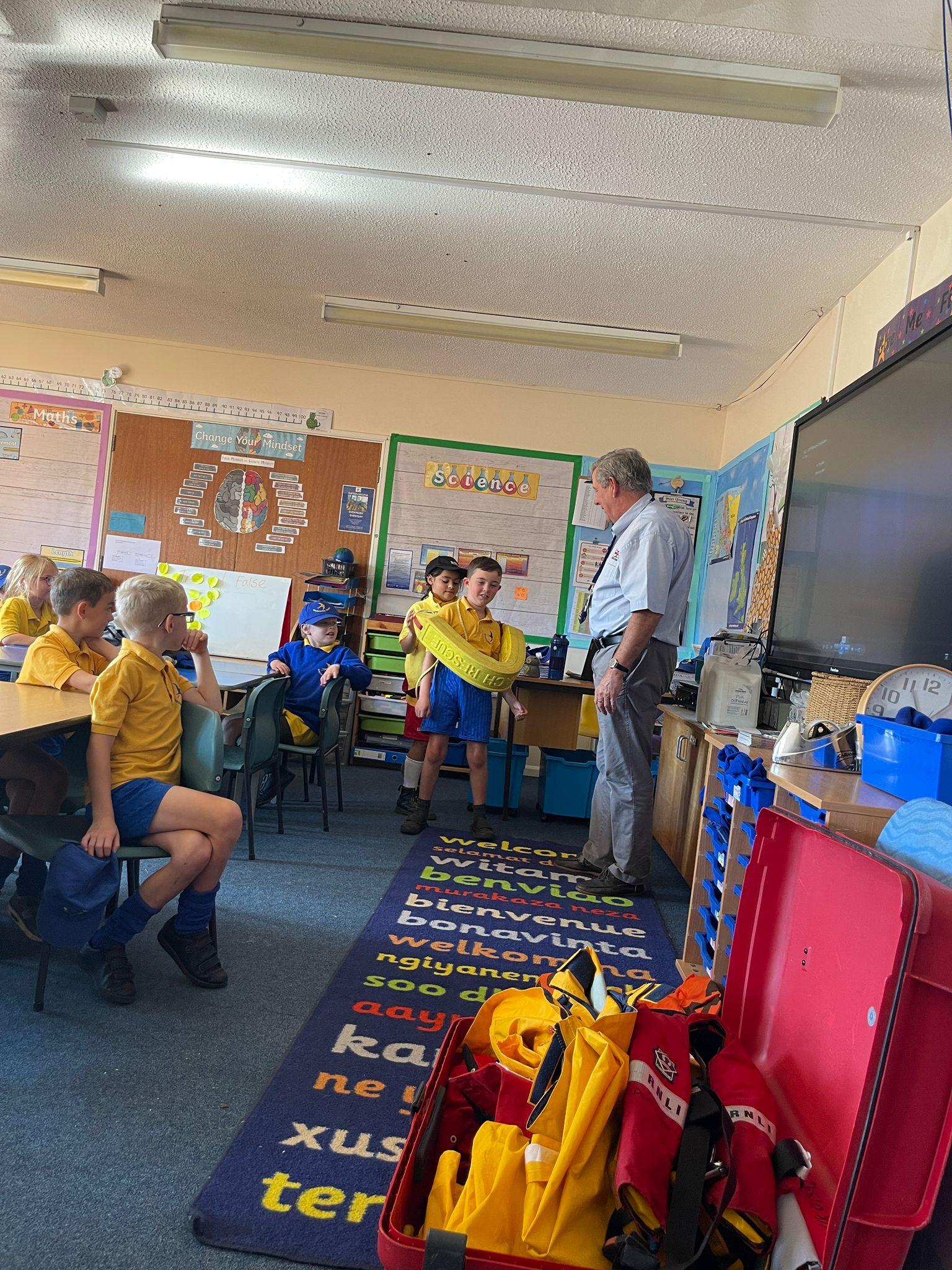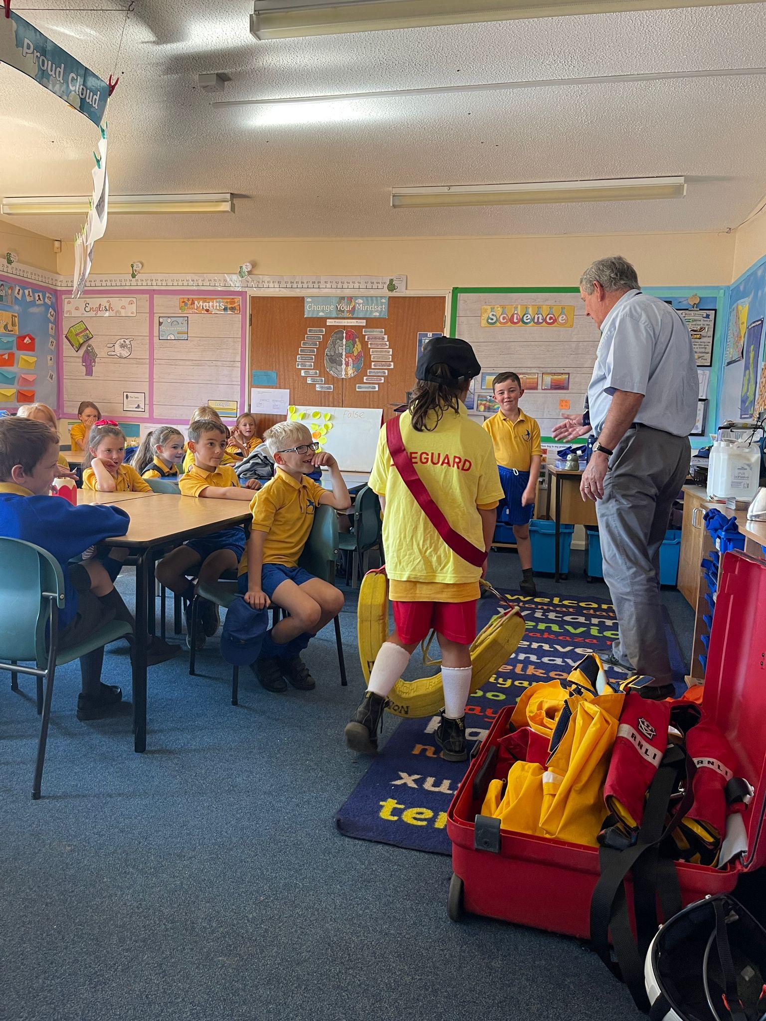 We had a visit from the RNLI on Friday. John spoke to us about water safety on the beach primarily, and things like what to do in an emergency, what the flags mean and different stories of rescue. Some children in class dressed up as life guards and had a go at holding the different equipment. We really enjoyed the interactive talk and learnt a lot!