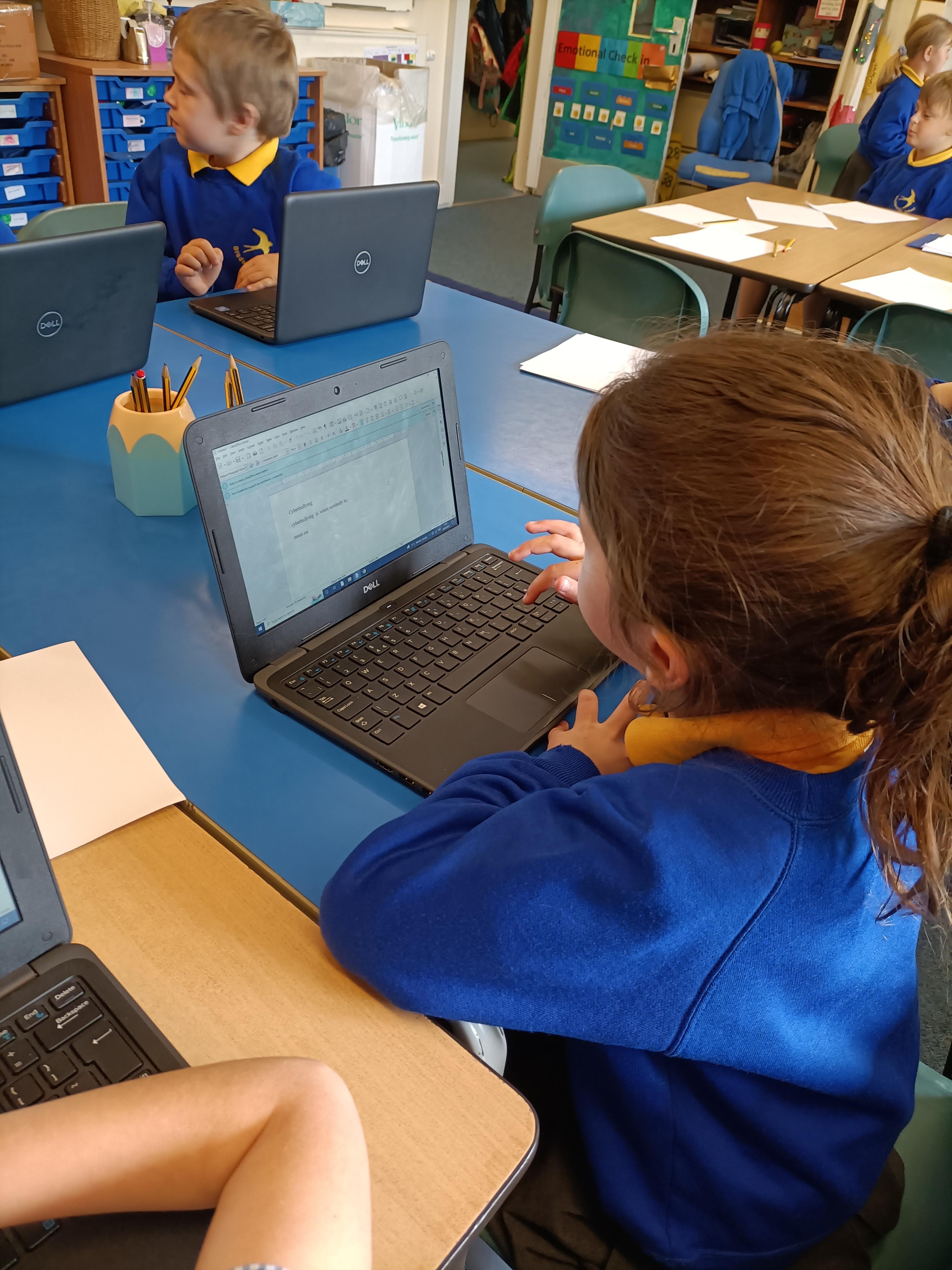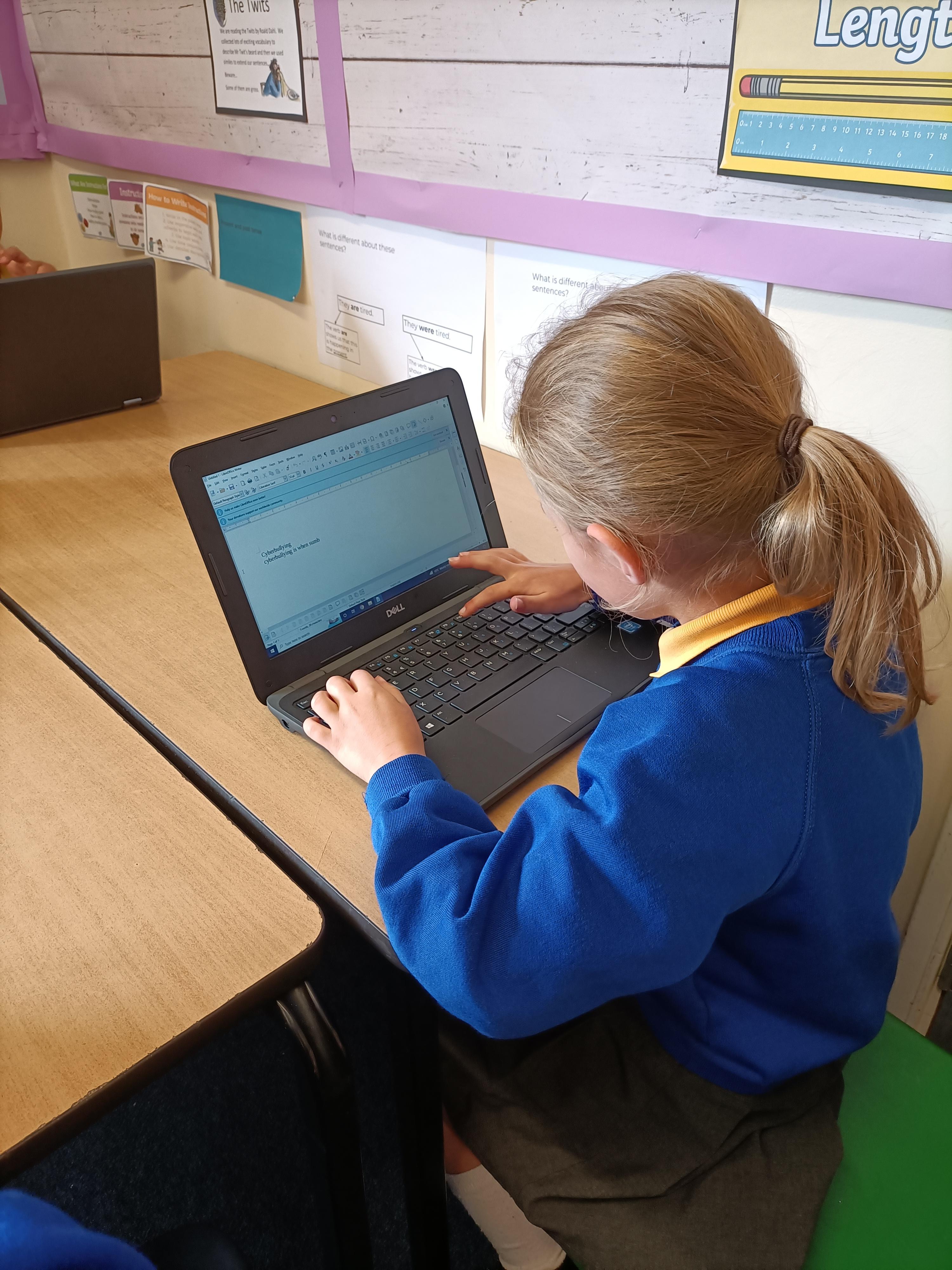 We have been learning about online safety this week and particularly cyberbullying- what it is, how to spot it and what to do about it. We then had a go at our typing skills on the computing, learning where the keys are, and how to use things like colons and bullet points.