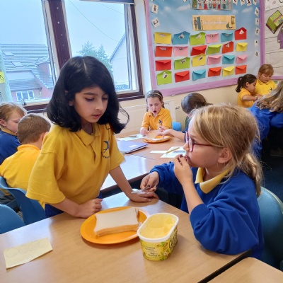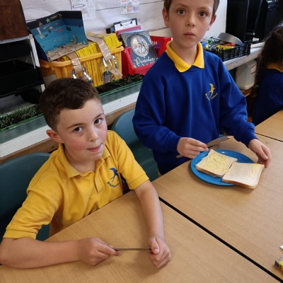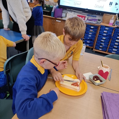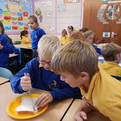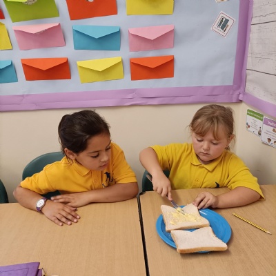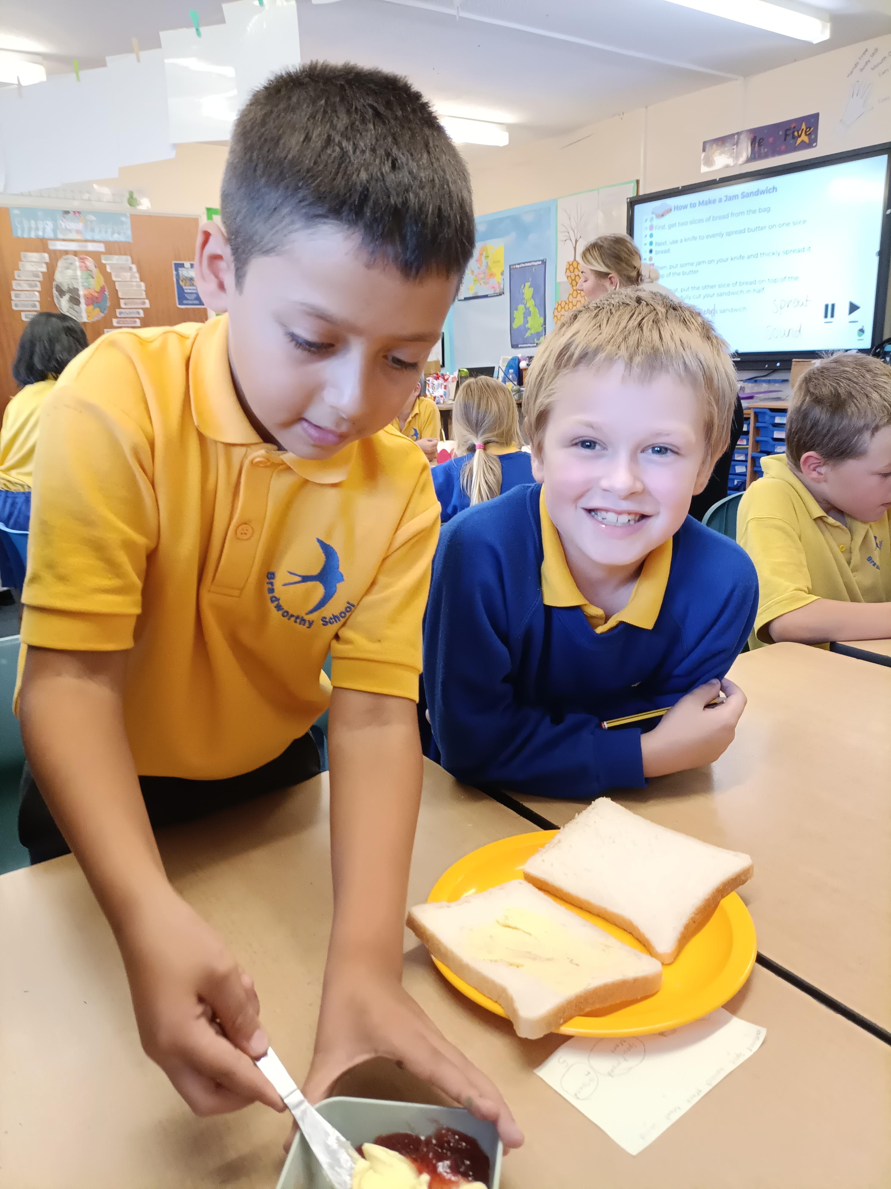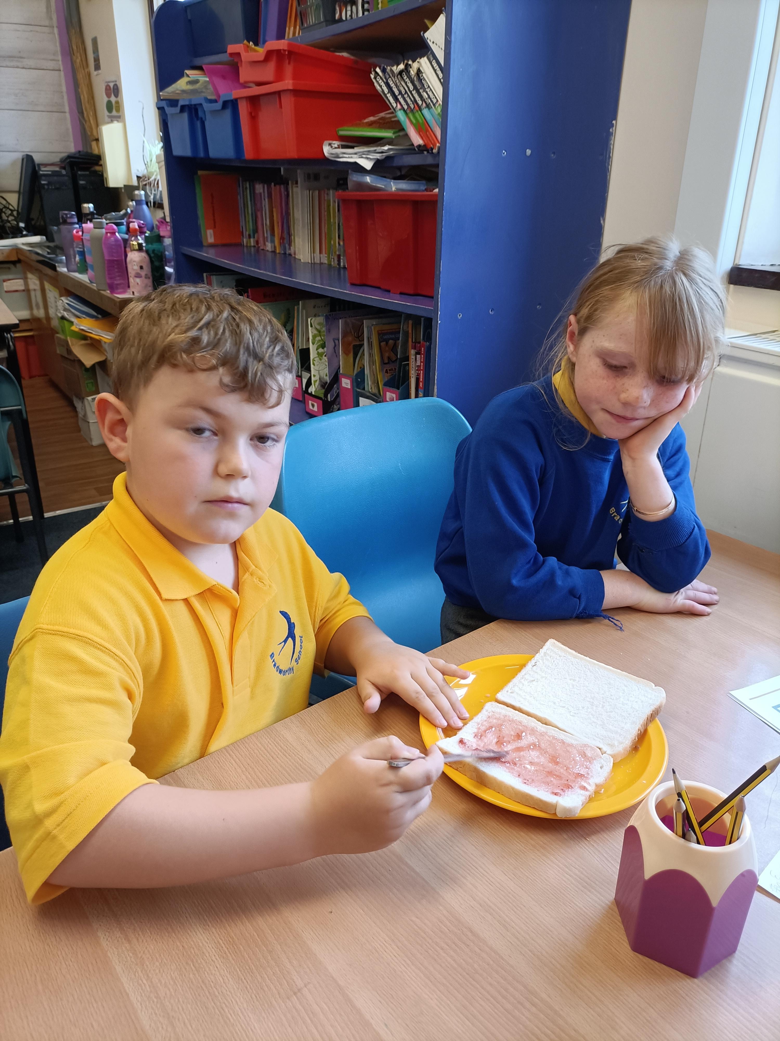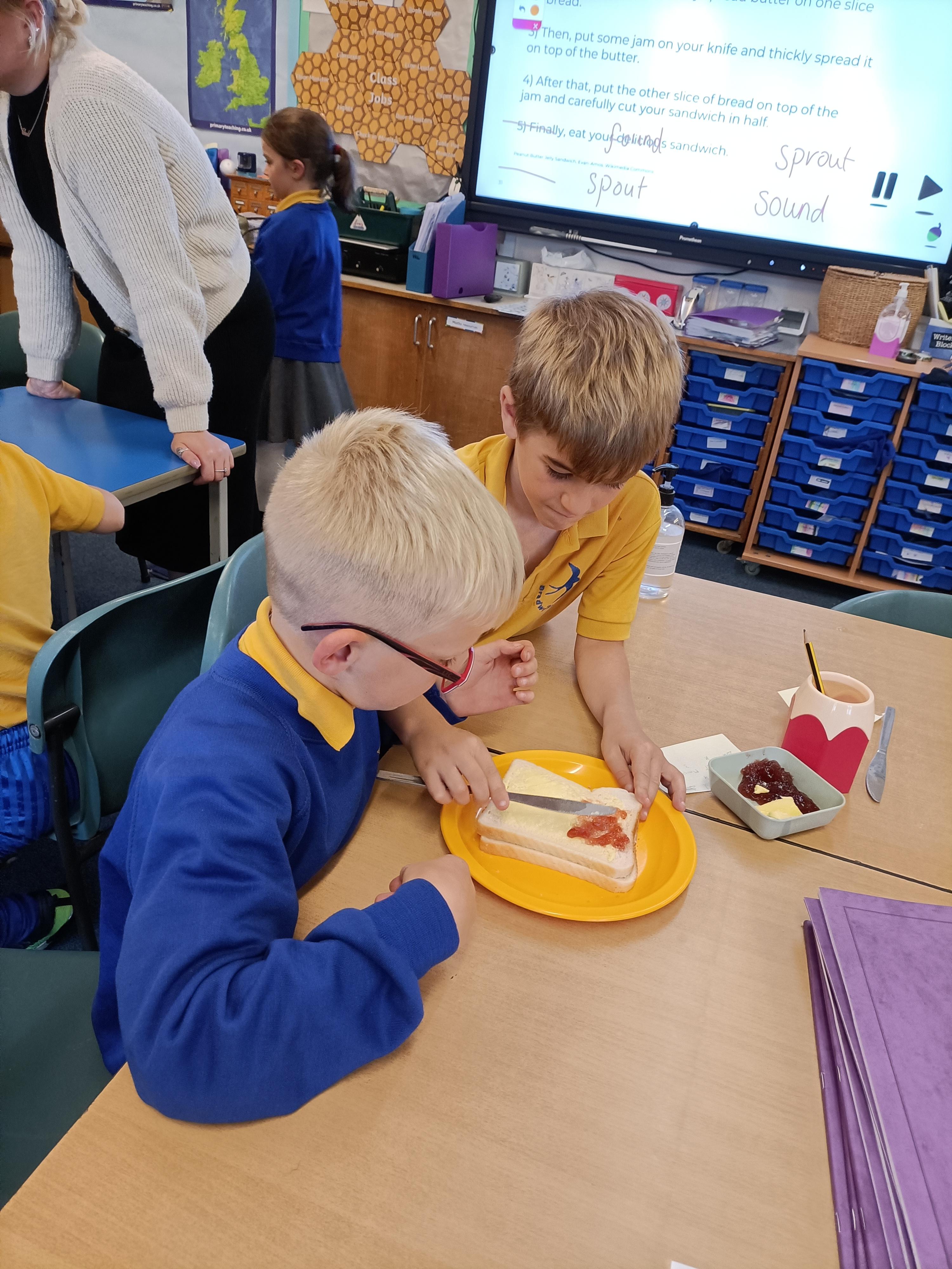For our English unit, we are learning how to write instructions. The children had fun following the instructions in partners to make their own jam sandwich!