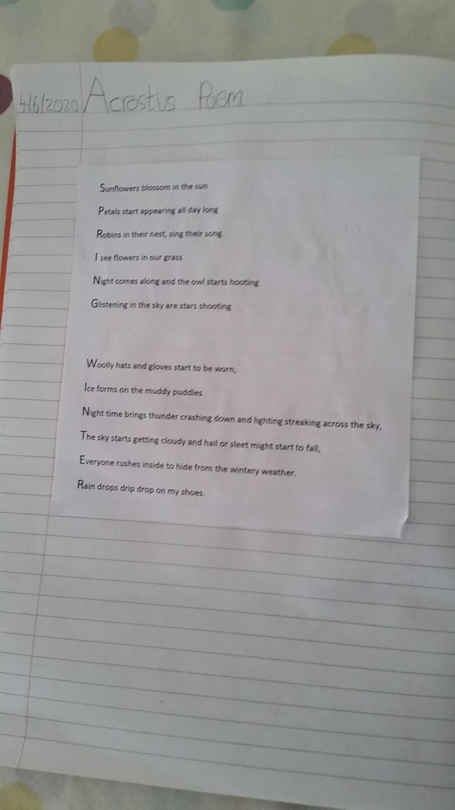 We are putting together a display of all your home learning work from the emails and will post a photograph soon!