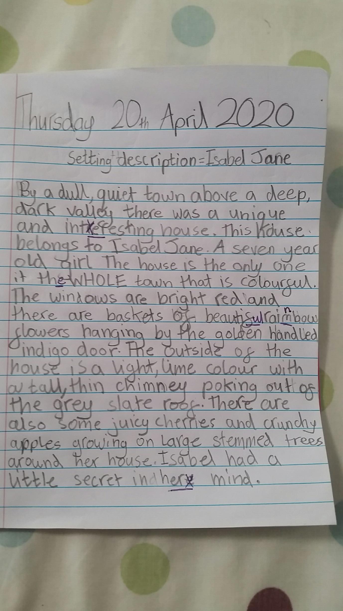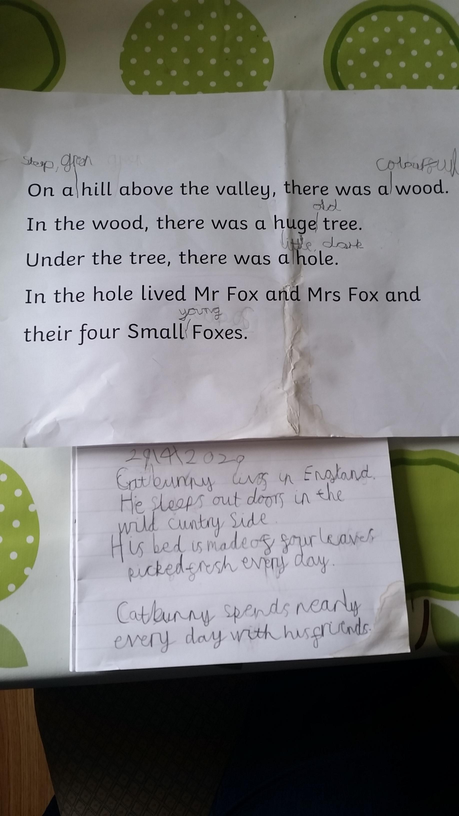 If you do some story writing this week, it would be really good if you could do some speech.