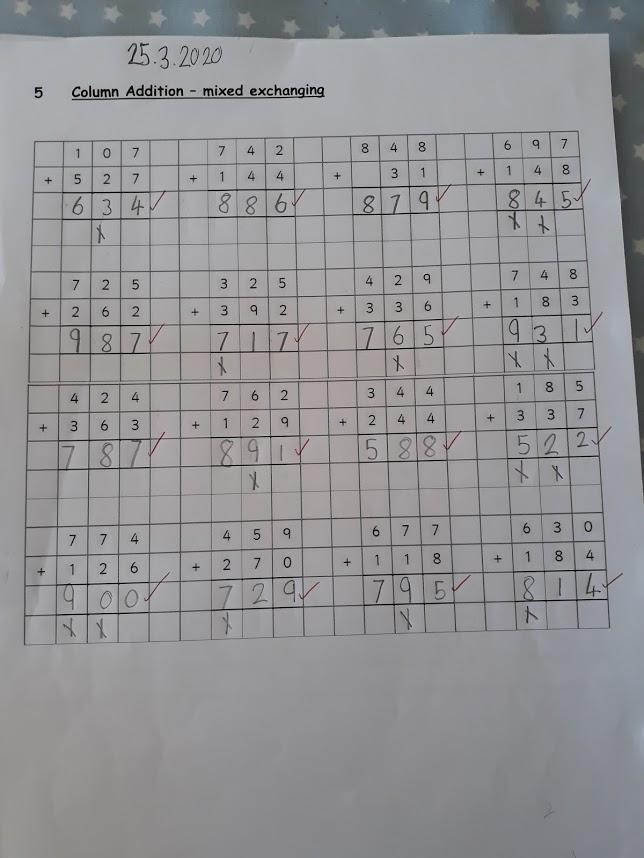 If anyone needs the pack printing out, please email me or phone the school and I can print it off for you. Alternatively, you could copy the sums down. However if you are doing this, please remember to line up your sums properly so you don’t get in a muddle.